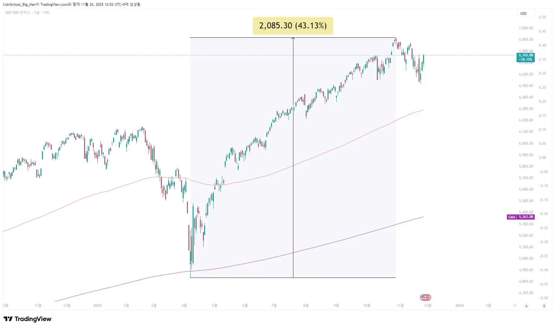 지금 하락폭을 더 크게 느껴지게 만드는 거야